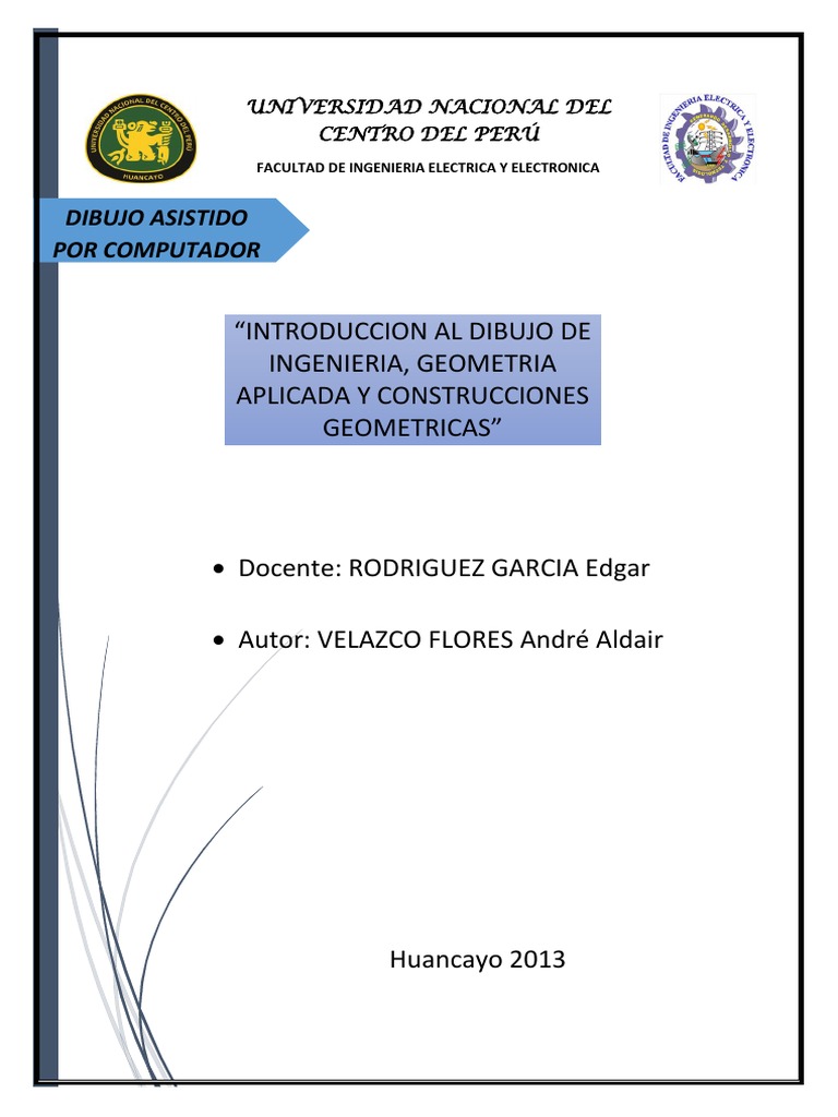 El presente trabajo monogrfico est orientado a desarrollar el tema de: INTRODUCCION AL DIBUJO DE INGENIERIA, GEOMETRIA APLICADA Y CONSTRUCCIONES GEOMETRICAS; con la finalidad de brindar los principios bsicos e iniciales y formar base para el estudio del curso de Dibujo asistido por computador. Dicho curso es de suma importancia en la formacin del ingeniero, pues desarrollar en l la capacidad de crear y disear objetos equipos y maquinarias reales para un adecuado desenvolvimiento en las actividades que demanda su profesin. Espero que el presente sea de agrado del lector y de buena utilidad en la enseanza universitaria.