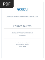 Durn S. y cols. realizados con ratas y perros, la ciclohexilamina causa atrofia testicular y alteracin de la espermatognesis (31,32). Takayama y cols. (33) realizaron un estudio de toxicidad a largo plazo con ciclamato en los primates no humanos, veintin monos fueron alimentados con 100 o 500 mg/kg de ciclamato/ da por ms de 24 aos, y se compararon con 16 controles. Los autores concluyeron que no hay evidencia de carcinogenicidad del ciclamato de sodio. No hay estudios descriptivos o de casos y controles de ciclamato en los seres humanos, ya que fue aprobado despus de la sacarina, y los productos contienen mezclas de ambos edulcorantes artificiales. Hay que suponer que la mayora de los consumidores han utilizado tanto la sacarina y el ciclamato desde la introduccin de ciclamato. Edulcorantes, apetito y ganancia de peso Recientemente se ha iniciado el debate sobre si el consumo de edulcorantes aumenta el apetito y el peso corporal (34). Sustituir el azcar por edulcorantes puede ser una estrategia eficaz para el control de peso corporal, aunque los resultados son contradictorios (35-38). Se ha observado que la ingesta de sacarosa provoca un aumento de la glucosa plasmtica y un vaciamiento gstrico ms lento al compararlo con sucralosa, quien no provoca cambios en los niveles de glucosa plasmtica, al no estimular la liberacin de insulina (39), lo mismo sucede con las incretinas cuyos niveles se mantienen estables al consumir edulcorantes, lo que no sucede al consumir sacarosa (40). Por otro lado se discute que los edulcorantes no poseen un poder saciador como el azcar, inclusive podran causar la sensacin de hambre estimulando a comer en exceso, adems podran estimular los receptores del gusto, creando adiccin al sabor dulce (39). Estudios que han evaluado el efecto de la estevia sobre el apetito indica que los sujetos que consumieron aspartamo y estevia no compensaron comiendo ms en la siguiente comida (almuerzo o cena) y presentaron niveles similares de saciedad en comparacin con los sujetos que consumieron sacarosa, adicionalmente estevia redujo los niveles de glucosa plasmtica e insulina, lo que sugiere que estevia podra ayudar en la regulacin de la glucosa (35). Varios estudios recientes han documentado las circunstancias bajo las cuales la administracin de una variedad de edulcorantes artificiales puede producir respuestas fisiolgicas similares a los producidos por la administracin de edulcorantes calricos. Los ltimos hallazgos muestran un aumento en la expresin de los transportadores implicados en la absorcin intestinal de glucosa (SGLT1) y la induccin de la translocacin de los transportadores de glucosa (GLUT2) en el borde en cepillo de la membrana; el aumento dichos cambios pueden facilitar la absorcin y el metabolismo de los azcares ingeridos (41-44). Sin embargo, en el caso de los edulcorantes artificiales, debido a que estos cambios intestinales no estn acompaados por la presencia de azcares ingeridos, como consecuencia se podra aumentar el consumo de energa. Adems, estudios recientes han documentado que la sucralosa puede alterar la microflora intestinal y el aumento de peso corporal cuando se administra en las ratas (45). La evidencia adicional indica que en animales, incluyendo seres humanos, los sabores dulces pueden producir efectos fisiolgicos distintos de los producidos por las consecuencias calricas. Estudios en los seres humanos ha documentado la activacin neuronal diferencial en el hipotlamo durante el consumo de edulcorantes calricos en comparacin con 312 los no calricos, sugiriendo una vez ms las diferencias en el consumo de edulcorantes pueden ser detectados (46). En conjunto, estos datos apoyan la hiptesis de que el consumo de los sabores dulces en la ausencia de caloras produce efectos significativamente diferentes en comparacin con el consumo de los sabores dulces asociados con las caloras, y con el tiempo estos efectos pueden contribuir a un balance energtico positivo y el aumento de aumento de peso corporal. CONCLUSIONES Cada da el consumo de edulcorantes se hace ms masivo en nuestra sociedad y estn presentes en una gran variedad de alimentos. Los edulcorantes mantienen la palatabilidad de la dieta permitiendo reemplazar el azcar de muchos alimentos y as reducir el aporte calrico de los mismos. La ingesta es segura, pero es necesario determinar la cantidad de edulcorantes en los alimentos y monitorear el consumo por la poblacin, para determinar si estn o no sobrepasando los IDA. RESUMEN Los edulcorantes artificiales son sustancias que no aportan energa y que se agregan a los alimentos para proporcionarles un sabor dulce, incrementando el placer por comer. El objetivo fue revisar la literatura sobre el estado del arte de los edulcorantes artificiales, riesgos de su consumo, posibles efectos en el apetito y ganancia de peso. Desde su introduccin, los medios de comunicacin han informado sobre los riesgos potenciales de cncer, lo que ha contribuido a socavar el sentido de la opinin pblica de la seguridad. El papel de los edulcorantes en el riesgo de cncer ha sido ampliamente debatido durante las ltimas dcadas. Recientes estudios no muestran efectos adversos sobre el consumo de sacarina, aspartame, acesulfamo k y otros edulcorantes, incluyendo datos sobre los cnceres de estmago, pncreas y endometrio. Actualmente muchos edulcorantes artificiales se combinan en los productos actuales, el riesgo cancergeno de una sustancia nica es difcil de evaluar. El consumo de los sabores dulces en la ausencia de caloras produce efectos significativamente diferentes en comparacin con el consumo de los sabores dulces asociados con las caloras, y con el tiempo estos efectos pueden contribuir a un balance energtico positivo y al aumento de aumento de peso corporal. Palabras clave: Edulcorantes no nutritivos, apetito, cncer. 1. 2. 3. 4. 5. BIBLIOGRAFA Bartoshuk LM. Sweetness: History, Preference, and Genetic Variability. Food Technol, 1991; 45:108-10. Yang Q. Gain weight by going diet artif