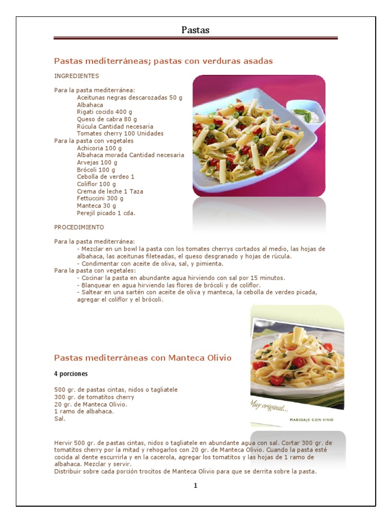 Pastas mediterrneas con Manteca Olivio
