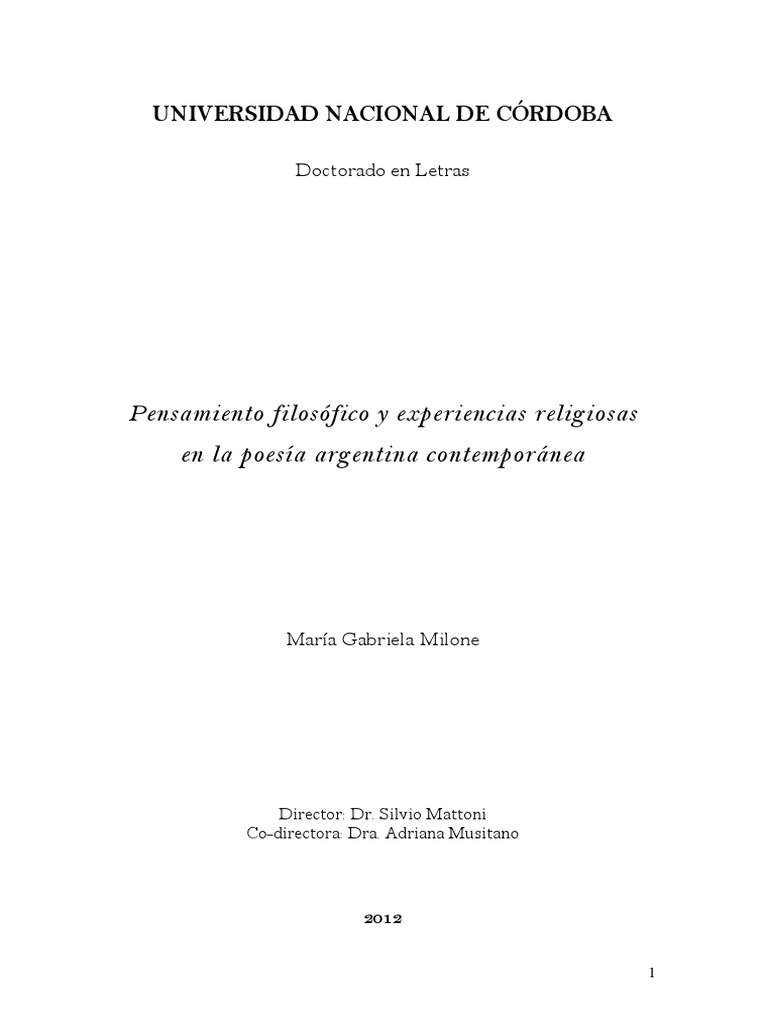 Crdoba. Miln, E. 1999. Llegando a San Juan, ponencia inaugural de "Una mirada a la mirada: Jornadas de Poesa y Literatura en Revista Nuestra Comunidad, N 23, Universidad Iberoamericana de Mxico en www.jornada.unam.mx. Milone, G. 2003. Hctor Viel Temperley. El cuerpo en la experiencia de Dios. Ferreyra Editor, Crdoba. 2004. Rezando el poema de los das. Hctor Viel Temperley o la adherencia de Dios en revista Hablar de poesa, nmero 11, Ao VI. Nuevo Hacer. Grupo Editor Latinoamericano, Buenos Aires. 2005. Experiencia, cuerpo y Dios. Mstica y surrealismo en Hospital Britnico de Hctor Viel Temperley. TFL. Indito. UNC, Crdoba. 139 pp. 2007a. Oscar del Barco o la escritura de lo sin nombre en Hablar de poesa, nmero 17, Ao IX. Alcin Editora, Crdoba. 2007b. En el agradecimiento de lo menos. Una lectura de poco pobre nada de Oscar del Barco en Confines de la mirada, N 4, Seminario de Lectura de Autores de Crdoba, Escuela de Letras, FFyH, UNC. 2008a. Abandono. Notas sobre la poesa de Oscar del Barco en Mattoni [et. al.] En el fragor del mundo. Escritos para Oscar del Barco. Alcin Editora Editora, Crdoba. 2008b. Fragmentos del habla neutra de la muerte. Notas sobre diario de Oscar del Barco, en Escribas. Revista de la Escuela de Letras. Ao 8. Nro. V, FFyH, UNC. 2008c. El dolor de la carne. La figura de Cristo en Hctor Viel Temperley y Oscar del Barco en Actas del III Congreso Internacional "Transformaciones culturales. Debates de la teora, la crtica y la lingstica", Buenos Aires. Publicacin digital en CD. ISBN 978-987-1450-53-4. 2009a. Lenguaje y experiencia en la poesa de Hugo Padeletti en VI Jornadas de Encuentro Interdisciplinario Las Ciencias Sociales y Humanas, Secyt, Ciffyh, FFyH, UNC. http://secyt.ffyh.unc.edu.ar/vi-jornadas. 2009b. Estado de exceso, en Croce, S. y Biset, E. (compiladores): Exceso y prudencia. Cuadernos de Nombres. Editorial Brujas, Crdoba. 2011. Hugo Padeletti y el tiempo detenido de la atencin en Mattoni (comp.) Para el cielo estrellado. Temas de poesa argentina. Alcin Editora, Crdoba. Molina, E. 2001. Prlogo a Crawl. Hospital Britnico, Ediciones del Dock, Buenos Aires. Monteleone, J. 2004. Figuraciones del objeto. Alberto Girri, Joaqun Gianuzzi, Hugo Padeletti, Hugo Gola en Historia Crtica de la literatura argentina. Volumen 9 El oficio se afirma, dirigido por Sylvia Satta. Emec, Buenos Aires. 2007. Miradas al fulgor: tiempo, moral y forma en Padeletti, H., El andariego. Poemas 1944-1980, FCE, Buenos Aires. (Seleccin y prlogo) 2010. 200 aos de poesa argentina. Alfaguara, Buenos Aires. Mujica, H. 1997. Hugo Mujica. Reportaje por A. Emilia Lahtte. Coleccin Testimonios de fin de milenio, Vinciguera, Buenos Aires. 1998. La palabra inicial. La mitologa del poeta en la obra de Heidegger. Trotta, Madrid. 2002. Poticas del vaco: Orfeo, Juan de la Cruz, Paul Celan, la utopa, el sueo y la poesa, Trotta, Madrid.