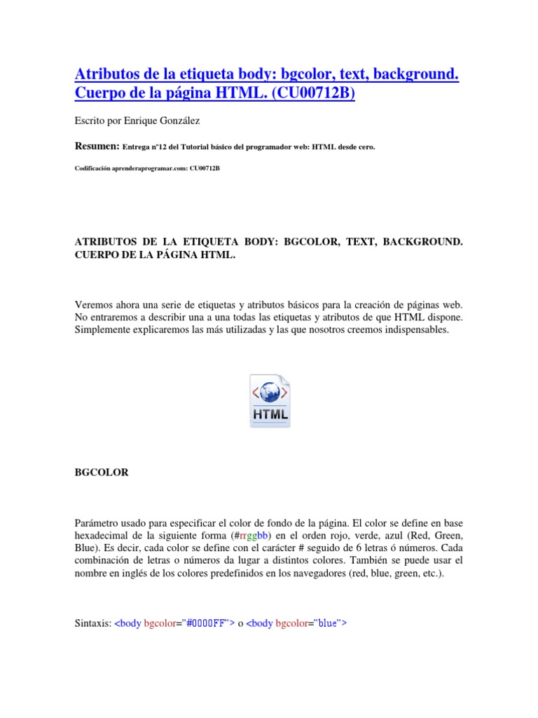 ATRIBUTOS DE LA ETIQUETA BODY: BGCOLOR, TEXT, BACKGROUND. CUERPO DE LA PGINA HTML.