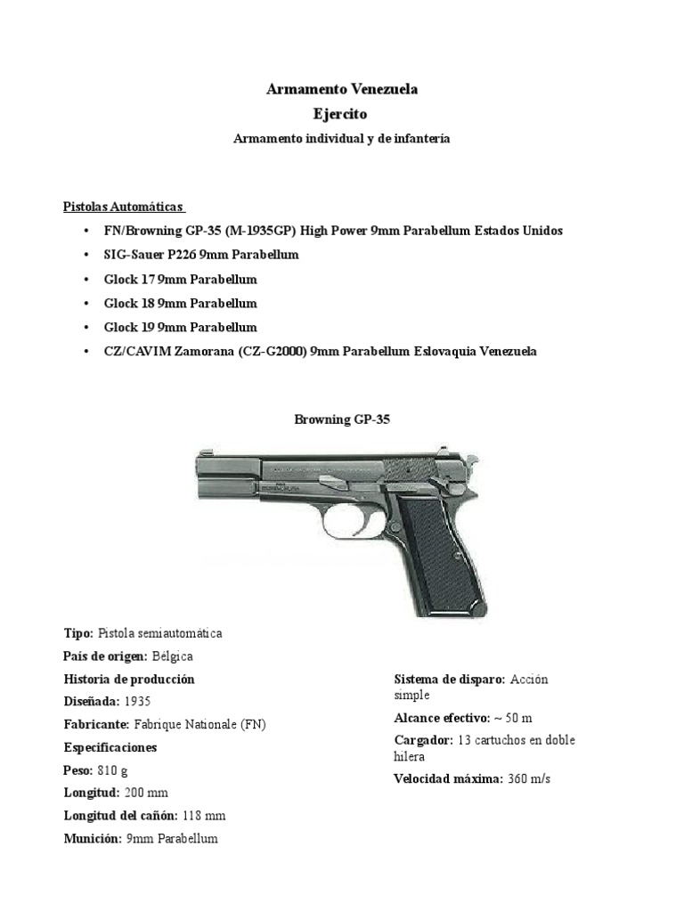 Pistolas Automticas FN/Browning P!"# $%!&'"# P( )ig* Power 'mm Para+ellum Estados ,nidos -. !-auer P//0 'mm Para+ellum loc1 &2 'mm Para+ellum loc1 &3 'mm Para+ellum loc1 &' 'mm Para+ellum 45/4AV.% 5amorana $45! /666( 'mm Para+ellum Eslova7uia Venezuela