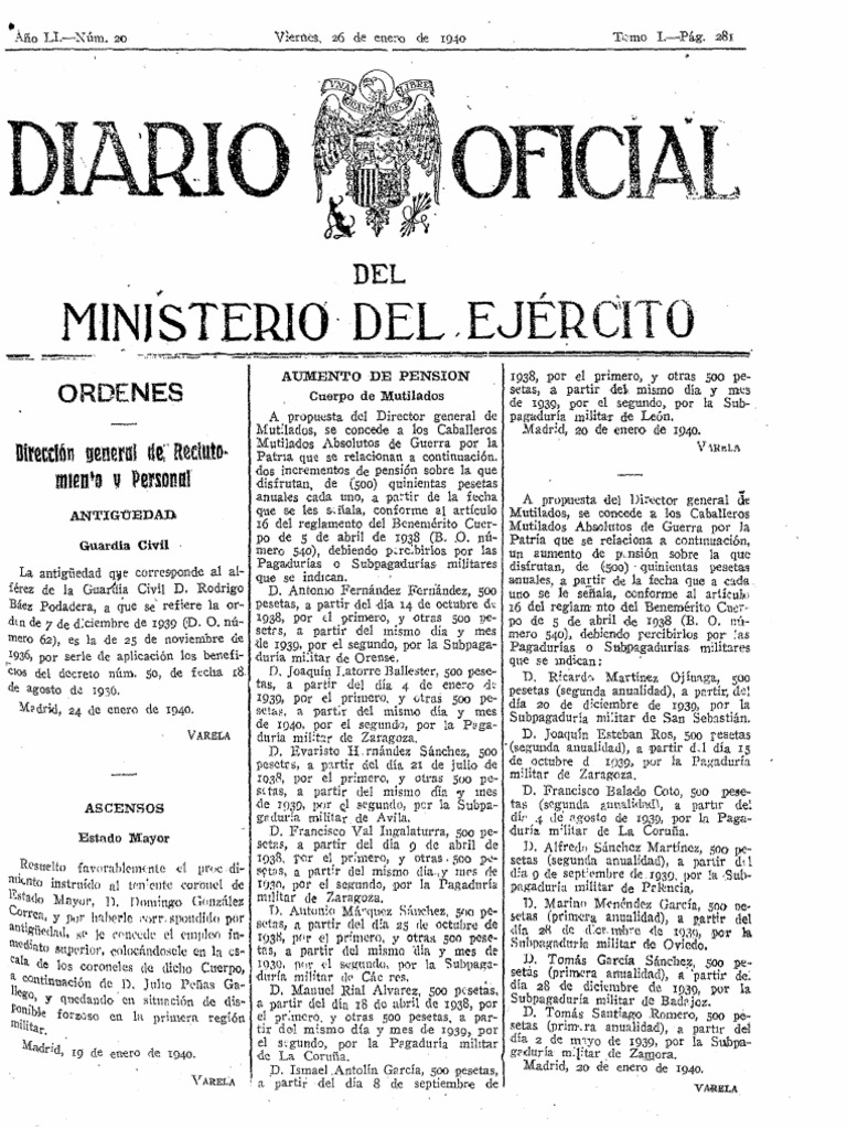 Aumentos de Pensión y Ascensos Militares 1940