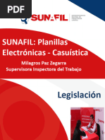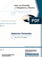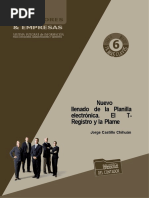 2.2 El Registro de Informacin Laboral o T-REGISTRO El Registro de Informacin Laboral o T-REGISTRO es el componente en el cual el empleador debe registrar a: A s mismo. Trabajadores. Pensionistas. Prestadores de servicios que no generan rentas de [Link]. Personal en formacin-modalidad formativa laboral y otros. Personal de terceros; y, Derechohabientes. El uso del T-REGISTRO es obligatorio desde el 01 de agosto del ao 2011. 2.3 La Planilla Mensual de Pagos o PLAME La Planilla Mensual de Pagos o PLAME es el aplicativo que los empleadores debern elaborar mensualmente y que contendr toda la declaracin referida a la jornada laboral, ingresos y determinacin de la deuda de aquellos trabajadores, entre otros, que previamente hayan sido declarados en el T-REGISTRO (a excepcin de los prestados de servicios que generan rentas de 4ta categora). En efecto, la presentacin de la PLAME que se realice ante la SUNAT deber contener la informacin correspondiente al mes calendario precedente a aqul en que vence el plazo para dicha presentacin, de acuerdo al cronograma que establezca la SUNAT para las obligaciones de carcter mensual. Las remuneraciones e ingresos declarados en la PLAME debern ser: Los devengados y/o pagados al trabajador, pensionista, prestadores de servicios: - Que presta servicios a un empleador por los cuales obtenga renta de quinta categora a las que se refiere el inciso e) del artculo 34 de la Ley del Impuesto a la Renta. - Que se encuentra incorporado como asegurado regular al Rgimen Contributivo de la Seguridad Social en Salud por mandato de una Ley especial por las que existe obligacin de realizar aportaciones de salud. Los efectivamente pagados al prestador de servicios que presta servicios a un empleador por los cuales obtenga rentas de cuarta categora a las que se refiere el artculo 33 de la Ley del Impuesto a La Renta. Los efectivamente pagados al personal en formacin modalidad formativa laboral otros.