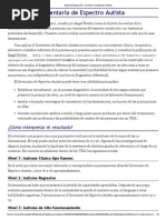 A qu Edad ocurri la primera conducta? ___________________________________________________ Esa conducta se vio en todas partes? ______________________________________________________ Podra ser esa conducta el resultado de otra condicin? _______________________________________ Si es as, De qu condicin? _____________________________________________________________ Se han hecho otras evaluaciones para descartar al otra condicin? _______________________________ Cules?`______________________________________________________________________________ Quin lo evalu y cules fueron los resultados? _______________________________________________ Qu otras evaluaciones se han hecho? ______________________________________________________ Se notan alteraciones en las 4 reas de definicin del autismo? ___________________________________ Qu reas son las ms afectadas? __________________________________________________________ Cules son los sntomas? _________________________________________________________________ Qu tan severos son los sntomas? __________________________________________________________ Cmo interfieren los sntomas con el funcionamiento normal? _____________________________________ Qu informacin se necesita? ______________________________________________________________ Quin puede proveer esa informacin? _______________________________________________________ Qu recursos existen para posteriores evaluaciones? ___________________________________________