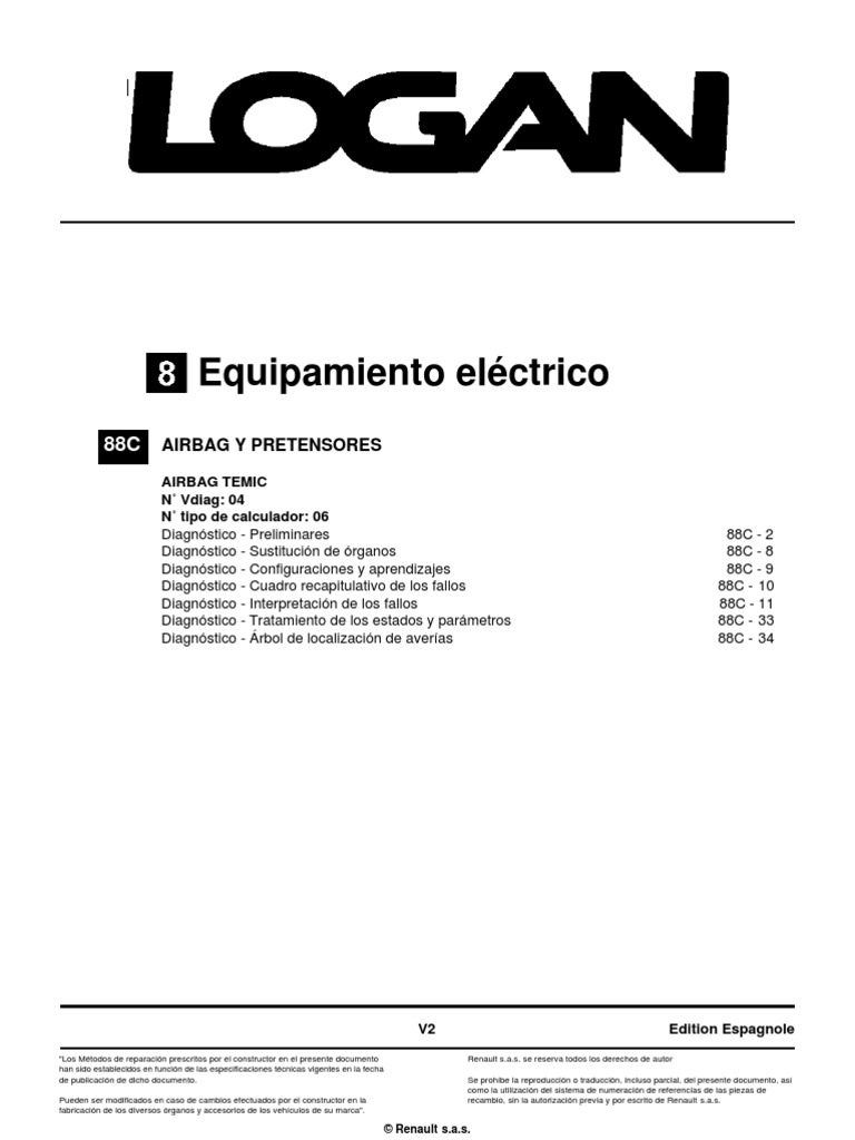 "Los Métodos de reparación prescritos por el constructor en el presente documento Renault s.a.s. se reserva todos los derechos de autor