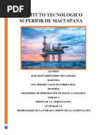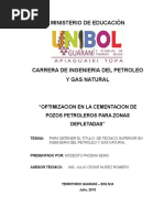 INTRODUCCIN La cementacin de pozos petroleros es una amalgama de mucha interdependencia cientfica y disciplinas ingenieriles incluyendo qumica, geologa, fsica y petrleo, mecnica e ingeniera elctrica. Cada uno es esencial en el logro de la meta primaria de la cementacin durable en la zona de aislamiento. Durante los aos 2008 y 2010 la compaa Schlumberger en el rea de cementacin (Well Services), cement 19 pozos para el cliente