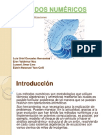 La enseanza de los mtodos Numricos, actualmente se encuentra ntimamente ligada a la construccin de sistemas matemticos de alta precisin y exactitud. De aqu que esta haya evolucionado , y este evolucionando continuamente, sobre todo para satisfacer las necesidades y requerimientos de los instrumentos de control numrico ,diseo de ingeniera, y en muchos otros de los campos cientficos. La mayor parte de los ingenieros dependen de herramientas de tipo robtico, que requieren de aproximaciones cada vez mas exactas y precisas. Es por tanto deseable que a la par de la enseanza Terica de los Mtodos Numricos, vaya apareado , la enseanza de un lenguaje de programacin de alto nivel, que permita escribir directamente todos los algoritmos matemticos que se van desarrollando durante el curso. En el caso del presente libro se utiliza, el Matlab, por ser un sistema Matemtico, muy flexible y relativamente sencillo de utilizar . Este libro surge de la experiencia de haber enseado la asignatura de Mtodos Numricos durante seis semestres consecutivos , que se imparte en el cuarto semestre de la carrera de Ingeniera en Informtica y la Licenciatura JOSE GARZON ARIAS -8-