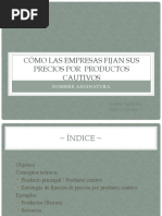 FIJACIN DE PRECIOS PARA PRODUCTO CAUTIVO: Determina el precio para productos que se tienen que usar junto con un producto principal. EJEMPLOS: Gillette vende sus mquinas de afeitar (o rastrillos) a un precio bajo, pero gana dinero en los cartuchos de repuesto. HP obtiene mrgenes muy bajos por sus impresoras, pero muy altos en los cartuchos de impresin y otros suministros. Sony y otros fabricantes de consolas de juegos las venden a precios bajos y obtienen la mayora de sus utilidades a partir de los juegos de video. FIJACIN DE PRECIOS EN DOS PARTES: El precio del servicio se desglosa en una cuota fija ms una tarifa de consumo variable.