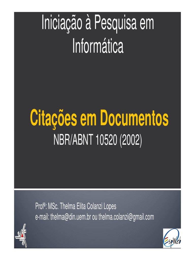 Norma Brasileira nº6023 da Associação Brasileira de Normas Técnicas (ABNT) com o formato Autor-Data.