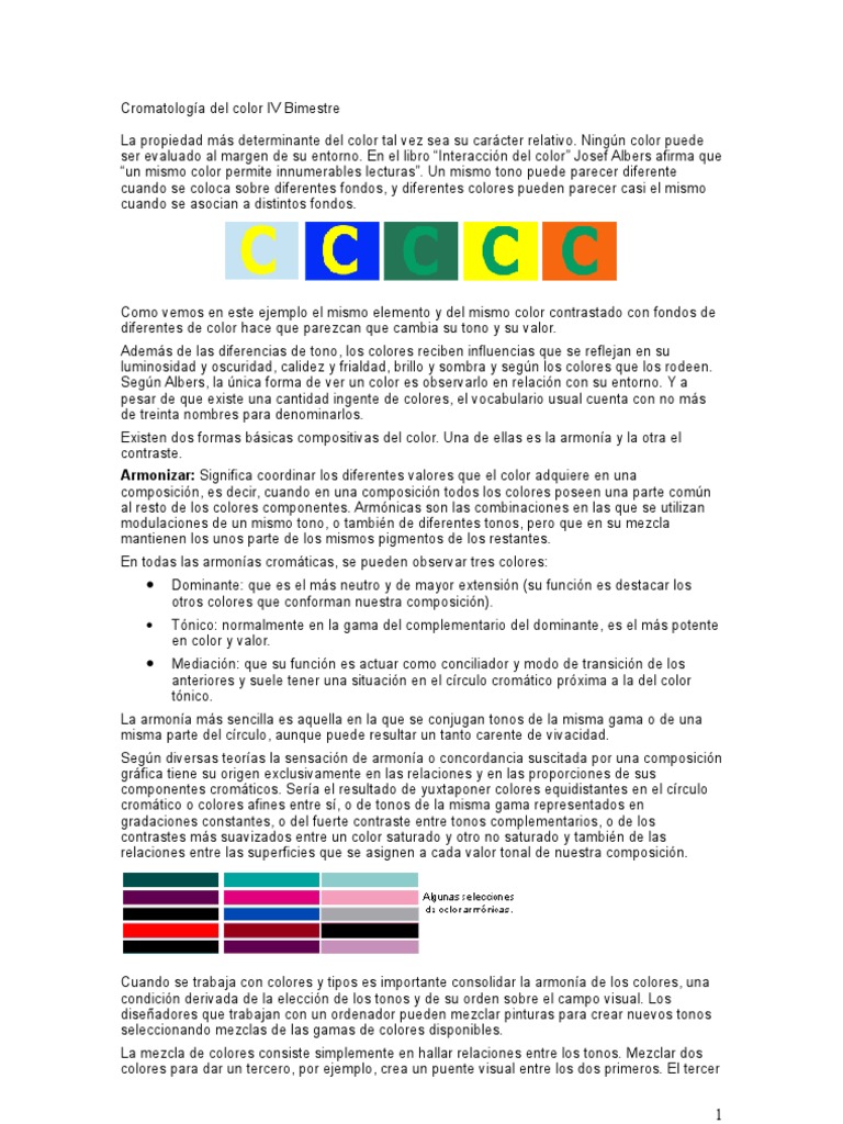 al resto de los colores componentes. Armónicas son las combinaciones en las que se utilizan