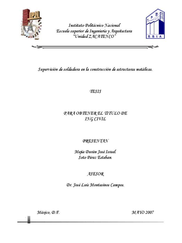 Tesis Profesional : Supervisin de soldadura en la construccin de estructuras metlicas.