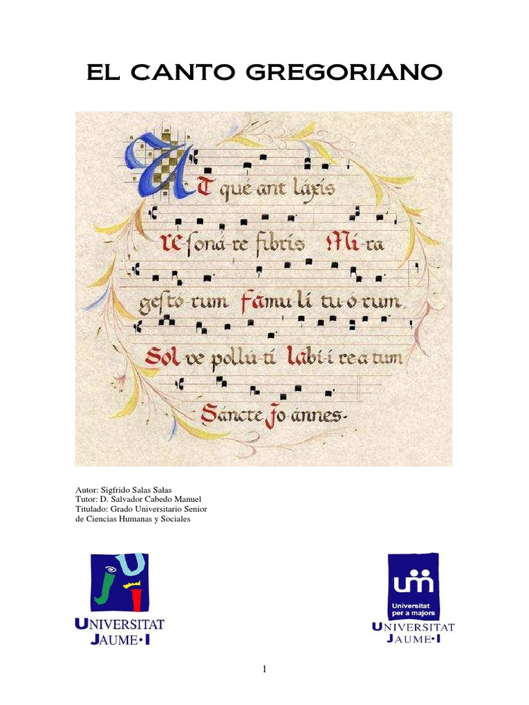 padres Gay y Mallet, el padre Thibut de la abada luxenburguesa de Clearbaux La msica occidental no sera lo que es sino hubiera existido el canto gregoriano. Este cre una estructura meldica propia. Es la base de la notacin musical y de la teora musical medieval: el Ars Musica. Actualmente el canto gregoriano es materia de estudio en universidades y conservatorios. Lo practican pocas instituciones eclesisticas pero son muchos los coros que utilizan este repertorio con criterios de msica de concierto. El canto gregoriano es algo ms que msica: algo ms que meloda: mucho ms que una sucesin de sonidos. Debemos profundizar en los aspectos litrgicos e histricos para comprender sus funciones estructurales: su valor como msica funcional, el ao litrgico, la historia de su formacin y la evolucin de sus distintas formas.