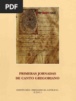 Segn los monjes de Silos. Es conocida la deuda contrada con la fundacin monstica de Solesmes, donde, mientras la documentacin gregoriana es custodiada como en un museo de gran riqueza, continan los estudios sistemticos y resuena a diario, al igual que en Silos, el canto vivo de la tradicin. Este breve excursus nos ha introducido, por lo menos en parte, en las pluriseculares vicisitudes del Gregoriano. Sin embargo no se ha mencionado todava lo esencial de sus caractersticas: debemos atraer la atencin sobre las connotaciones musicolgicas y especialmente sobre la identidad ritual de la que brota su verdadera originalidad esttica y espiritual, y por este motivo asociar ambas perspectivas para tratarlas