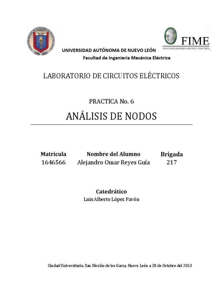En anlisis de circuitos elctricos, el anlisis de nodos, o mtodo de tensiones nodales es un mtodo para determinar la tensin (diferencia de potencial) de uno o ms nodos. Cuando se analiza un circuito por las leyes de Kirchhoff, se podran usar anlisis de nodos (tensiones nodales) por la ley de corrientes de Kirchhoff (LCK) o anlisis de malla (corrientes de malla) usando la ley de tensiones de Kirchhoff (LVK). En el anlisis de nodos se escribe una ecuacin para cada nodo, con condicin que la suma de esas corrientes sea igual a cero en cualquier instante, por lo que una carga nunca puede acumularse en un nodo. Estas corrientes se escriben en trminos de las tensiones de cada nodo del circuito. As, en cada relacin se debe dar la corriente en funcin de la tensin que es nuestra incgnita, por la conductancia. Por ejemplo, para un resistor, Irama = Vrama * G, donde G es la Conductancia del resistor. El anlisis de nodos es posible cuando todos los nodos tienen conductancia. Este mtodo produce un sistema de ecuaciones, que puede resolverse a mano si es pequeo, o tambin puede resolverse rpidamente usando lgebra lineal en un computador.