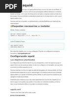 9. Luego se debe configurar el archivo [Link] de la siguente manera: #vim /etc/squid/[Link] Nota: Normalmente se debe usar el editor vi pero para mayor comodidad se utilizara el editor vim. 10. Ahora, editamos las siguientes lneas (siempre y cuando usaremos el dansguardian para el uso de bloqueador):