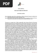 no distinguiera entre el personaje ficticio de Albertine y Alfred Agostinelli, el hombre real del que Proust se haba enamorado. Marcel desalentaba a quienes lean su libro como una novela en clave. Deca que, en todo caso, haba diez claves para un solo personaje. Lo que no siempre era cierto. Eso le evitaba problemas con la gente que conoca y en la que se haba inspirado y, por otra, le permita distinguir entre el narrador como personaje y l, como autor. -Cmo se repartieron las entradas usted y Raphal Enthoven? -No hubo casi ningn problema, porque l, que est contra Sainte-Beuve y es un filsofo, se ocup ms bien de los conceptos y de los pensadores relacionados con Proust, por ejemplo Bergson o Spinoza. En cambio, yo me encargu de los personajes, la biografa, ciertos modelos en la vida real; por ejemplo, Jean Cocteau, adems de algunas ancdotas y sentimientos. -Quin escribi la entrada sobre los celos? -Yo. Los celos son el sentimiento ms importante de la recherche? Segn Proust, uno no est celoso porque est enamorado; al revs, uno se enamora porque est celoso. Los celos preceden al amor. Swann se enamora de Odette cuando sospecha que ella tiene como amante a Forcheville. Los celos son los que permiten cristalizar el amor. -Usted es celoso? -S. Soy un gran celoso, de la peor especie, un celoso proustiano, alguien que tiene celos del pasado. Soy suficientemente narcisista como para no tener demasiados celos del presente y del futuro; en cambio, me atormenta el pasado porque no puede cambiarse. -Encontr alguna relacin entre Proust y Amrica latina? -Muy pocas. El compositor y cantante Reynaldo Hahn, el gran amigo de Marcel, haba nacido en Venezuela. El secretario del conde Robert de Montesquiou era Gabriel Iturri, un tucumano. A Proust le gustaban los nombres espaoles tradicionales. Se interes mucho por su joven amigo, Illn lvarez de Toledo, marqus de Casa-Fuerte, nacido en Npoles y criado en Francia, que descenda de los virreyes espaoles de Npoles. La relativa ruina de Proust se debi en parte a su debilidad por las palabras espaolas. Jugaba a la Bolsa y compr acciones de la compaa Ro Tinto, a la que le fue muy mal. Marcel compraba acciones por la sonoridad de los nombres. "Ro Tinto" le encant. En cambio, no le gustaba su propio apellido. Cuando entraba a un saln y el ujier deba anunciarlo, le peda que no lo nombrara muy fuerte. Haba una razn para esa actitud. El apellido Proust proviene de una regin entre la Beauce y Perche. En esa zona, la "s" de Proust no se pronuncia, por lo tanto, el nombre de familia quedaba reducido a "prout" y "prout" es una expresin infantil que significa "pedo". Hoy, a nadie se le ocurrira no pronunciar la "s" de Proust. -En una entrada del Dictionnaire , su hijo reconoce que hay tres momentos de la recherche , en que el narrador no se distingue de Proust y, por lo tanto, la novela podra convertirse provisoriamente en autobiografa. Sainte-Beuve tendra razn. -Mi hijo, con gran honestidad, seala esos lugares. Sera largo explicar las tres situaciones, pero crean en la narracin una sensacin muy extraa. Es como si la realidad hubiera