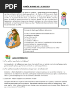 Madre del Redentor y Corredentora Particip en toda la obra redentora de su Hijo Jess, guardando todo en su corazn. Estuvo presente en el Sacrificio en el Calvario, sufriendo con su Hijo y ofreciendo su propio sacrificio por la salvacin de todos los hombres. Mara en la Historia de la Salvacin (Lc.1,26-38) En las primeras pginas de la Biblia aparece la figura de una mujer elegida por Dios, ntimamente vinculada a su plan de Salvacin para los hombres. Dios dijo a la serpiente en el Paraso: Pongo perpetua enemistad entre ti y la mujer, entre tu descendencia y la suya; sta te aplastar la cabeza (Gn.3,14-15). La grandeza de Mara arranca del hecho de ser MADRE DE DIOS: el ngel le dijo: Algrate, llena de gracia, el Seor est contigoNo temas, Mara, porque has encontrado gracia ante Dios. Concebirs en tu vientre y dars a luz un hijo y le pondrs por nombre Jess. Y Mara respondi: Aqu est la esclava del Seor, hgase en m segn tu palabra. Y desde ese instante el Verbo, el Hijo de Dios, se hizo carne y habit ente nosotros (Jn.1,14). Mara, madre de la Iglesia El 21 de noviembre de 1965, la Virgen Mara fue proclamada Madre de la Iglesia por el papa Pablo VI con estas palabras: Para gloria de la Virgen y consuelo nuestro, proclamamos a Mara Santsima Madre de la Iglesia, es decir, Madre de todo el Pueblo de Dios. Mara, por ser la Madre de Cristo, es tambin Madre de todo su Cuerpo Mstico, que es la Iglesia Mara, camino y modelo de santidad La santidad como camino de perfeccin, requiere de una gua o de un modelo para facilitar nuestro andar. Qu mejor eleccin que tomar a Mara como ejemplo a seguir. Mara es un modelo de fe, esperanza, amor, obediencia, humildad, paciencia, misericordia, alegra, agradecimiento y oracin. Imitndola, estaremos forjando nuestro propio camino de perfeccin. La Virgen Mara es la estrella que orienta todo camino de santidad; con su S, ella nos muestra un modelo de perfecta adhesin a la voluntad divina.