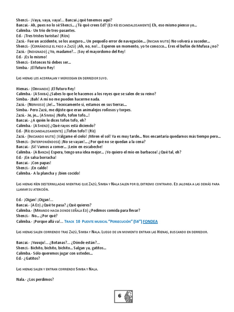 TRACK 11 PUENTE MUSICAL EL RUGIDO DE MUFASA (31) FONDEA. LAS HIENAS QUEDAN PARALIZADAS Y ENTRA MUFASA, QUIEN LAS
