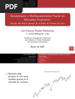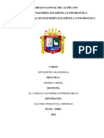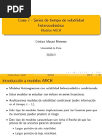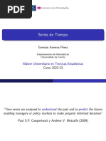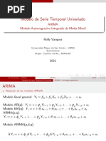 (a) 1 = 2 , 2 = 3 (b) 1 = 2 , 2 = 3 (c) 1 = 2 , 2 = 3 (d) 1 = 2 , 2 = 3 (e) 1 = 10 , 2 = 8 , 3 = 6 , 4 = 4 , 5 = 2 , 6 = 1 , 7 = 0.5 (f) 1 = 0.3 , 2 = 0.6 , En cada caso, representar la funcin de autocorrelacin y comparar los grficos obtenidos. 4. Generar un proceso ARIMA no estacionario. Representar grficamente las observaciones. Convertir el proceso en estacionario con una transformacin adecuada. 5. Generar un proceso ARIMA (1,1,0) y un proceso AR(1) con 1 = 0.9999 . Representar las respectivas funciones de autocorrelacin y comparar los resultados.