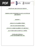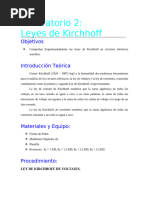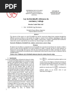 Hallar una relacin entre la suma de las cadas de voltaje en resistores conectados en serie y el voltaje aplicado 2. Verificar con experimentos la relacin que se estableci en el objetivo 1. 3. Hallar una relacin entre la suma de las corrientes que entran en cualquier nodo de un circuito elctrico y la corriente que sale de dicho nodo. 4. Verificar con experimentos la relacin planteada en el objetivo 1.