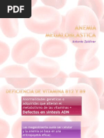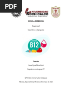 El siguiente caso clnico argumentamos con bases bioqumicas el proceso implicado en el desarrollo de la anemia Megaloblstica producida por la carencia nutricional de vitamina B12 o cido flico. Enumeramos las causas y consecuencias de las deficiencias de vitamina B12 y cido flico, explicamos la importancia de la vitamina B12 y el cido flico en el metabolismo, describimos los mecanismos de accin de las coenzimas derivadas de la vitamina B12 y las reacciones en las que participan. Explicamos la interrelacin existente entre las coenzimas de B12 y los folatos. Explicamos tambin las enfermedades resultantes de la deficiencia de las coenzimas derivadas de la vitamina B12.