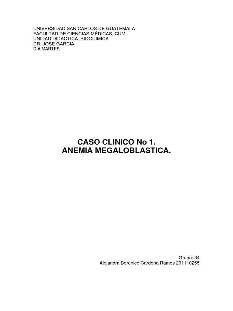 CASO CLINICO No 1. ANEMIA MEGALOBLASTICA.