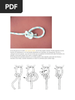 empujando hacia fuera el chicote que rodea el firme. La mayor desventaja es su tendencia a aflojarse cuando se efecta en cabos muy rgidos. Puede servir como nudo corredizo, que queda abierto tan pronto como desaparece la tensin en la lnea. Elaboracin: Se ejecuta formando un bucle en el firme del cabo, pasando el chicote a travs del seno as formado, rodeando el firme y pasando el chicote de nuevo a travs del seno. Para un acabado de mayor seguridad puede efectuar un nudo tope o un medio nudo para evitar un posible deslizamiento.