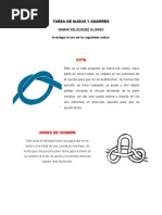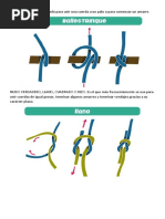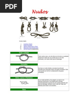 NUDOS DE TOPE..................................................................................................................................1 Nudo simple ........................................................................................................................................1 Nudo doble ..........................................................................................................................................1 Nudo en ocho.......................................................................................................................................1 Nudo de franciscano............................................................................................................................2 GAZAS....................................................................................................................................................2 As de gua............................................................................................................................................2 As de gua por seno .............................................................................................................................3 Corona de tres partes ...........................................................................................................................3 Gaza simple .........................................................................................................................................4 Gaza de pescador.................................................................................................................................4 Nudo de mariposa................................................................................................................................4 CORREDIZOS........................................................................................................................................5 Lazo corredizo.....................................................................................................................................5 Lazo corredizo doble ...........................................................................................................................5 As de gua corredizo (ahorcaperros) ...................................................................................................6 Nudo del ahorcado...............................................................................................................................6 EMPALMES O AYUSTES ....................................................................................................................7 Nudo de tejedor ...................................................................................................................................7 Nudo de cirujano .................................................................................................................................7 Nudo de pescador doble ......................................................................................................................7 Nudo de cazador..................................................................................................................................8 Mariposa alpina ...................................................................................................................................8 Nudo ordinario ....................................................................................................................................8 LIGADAS ...............................................................................................................................................9 Ballestrinque........................................................................................................................................9 Cote al palo..........................................................................................................................................9 Nudo constrictor (boca de saco)........................................................................................................10 Nudo de estrangular...........................................................................................................................10 Vuelta redonda y dos medios cotes ...................................................................................................10 Nudo de yugo ....................................................................................................................................11 Vuelta de carretero (pico de pjaro) ..................................................................................................11 NUDOS DE PESCA .............................................................................................................................12 Nudo de Turle....................................................................................................................................12 Nudo Uni ...........................................................................................................................................12 TRENZADOS .......................................................................................................................................13 Cadeneta ............................................................................................................................................13 Tralla ................................................................................................................................................13 Nudo de diamante..............................................................................................................................14 Cabeza de turco .................................................................................................................................14