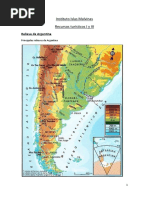 facilitado procesos de deserti acin $ se ha producido la recurrencia de grandes inundaciones durante los meses de lluvia $ grandes d+ficits h(dricos durante el resto del ao# :onas aledaas a los r(os Paragua$ $ Paran-: Se trata de las onas m-s h;medas" la formacin forestal predominante es selv-tica con predominio de especies distri!uidas m-s densamente# Pero tal foresta natural ha sido reducida $ empo!recida a lo largo de todo el siglo ,, por la tala sin renovacin de las especies autctonas# <a$ ma$or densidad de po!lacin $ se desarrollan cultivos de algodn" ma( " so&a $ algunos c(tricos# La ona sur: Entrando a la provincia de Santiago del Estero" son caracter(sticos los !aados formados por los r(os )ulce $ Salado" como los !aados del =[Link] $ del 4atu$a# En esta agricultura de !aados" se cultivan hortali as $ alfalfa# 4ctividad econmica: >anader(a" agricultura" e,plotacin forestal" Comerciali acin# Llanura Pampeana: U!icacin: La Regin pampeana o Pampa es una -rea geogr-fica situada en el centro-este de la 4rgentina" Urugua$" $ el sur del estado !rasileo de R(o >rande del Sur#n# ? Es en su ma$or e,tensin una e,tensa estepa @con sectores septentrionales de sa!ana@" la parte m-s oriental 6desde el centroeste de la Provincia de Crdo!a hasta el oc+ano 4tl-ntico de!ido al clima templado $ a la relativamente alta humedad Clima: Presenta clima templado pampeano" siendo m-s h;medo hacia el este# 'auna: El humano provoc grandes cam!ios al introducir la agricultura" la ganader(a" la forestacin# Entonces especies como el puma" and;" venado de las pampas" guanaco" etc# fueron desapareciendo para ser encontrados en su h-!itat natural en mu$ pocos lugares# 4ctividad econmica: >anader(a" agricultura# El -rea pampeana presenta las me&ores pasturas para criar vacunos" de los .ue se o!tiene carne $ leche para las grandes ciudades $ para e,portacin# La tecnolog(a me&or los pastos" las ra as $ los sistemas de cr(a" renovando la produccin# Meseta patagnica: La meseta patagnica es una de las unidades tectnicas $ formaciones geolgicas .ue constitu$en la composicin geolgica de la 4rgentina# Esta ona de la Patagonia argentina estuvo sometida a intensos movimientos de ascenso $ descenso .ue generaron un paisa&e parecido a una gran escalera# La meseta patagnica se encuentra en el e,tremo sur del continente americano% comprende las provincias deAeu.u+n" R(o Aegro" Chu!ut" Santa Cru $ *ierra del 'uego# Relieve $ formacin: La meseta patagnica se form en el prec-m!rico por orogenia <urnica o 4ss$ntica# 4lgunas onas fueron formadas por antiguos maci osprec-m!ricos $ otras por el depsito de materiales de diferentes or(genes 6marinos $ continentales7# La Patagonia mesetaria est- conformada por mesetas escalonadas de oeste a este" sierras" !a&os" depresiones $ valles fluviales# Las mesetas patagnicas suelen estar cu!iertas por mantos de !asalto" producto de las erupciones volc-nicas en la era ceno oica" o por rodados patagnicos: fragmentos de roca redondeados por el desgaste $ transportados por las aguas del deshielo# En el am!iente de las mesetas patagnicas e,isten una serie de serran(as de cum!res de poca altura# La importancia de estas sierras se !asa en .ue son centros dispersos de agua $" en algunos casos" poseen importantes $acimientos minerales" como los de hierro" en Sierra >rande" o plomo" en Pailem-n# Las sierras m-s importantes son las Patagnides" .ue no llegan a los B#555 metros de altura#