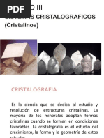 Cristal cbico Los cristales cbicos, como el de la Pirita (FeS2) aqu mostrado, tienen tres ejes perpendiculares con la misma longitud. La estructura cbica, o isomtrica, es la ms simtrica entre todos los cristales. La Pirita se conoce tambin como "oro de los locos" debido a su color amarillo y a su lustre metlico.