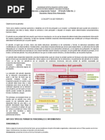 2. Redacte un prrafo con la siguiente oracin directriz. La actual situacin de Colombia es muy compleja 3. Subraye la oracin directriz en cada prrafo. a. No es el descubrimiento del metal lo que transforma al mundo, pues aquel se conoca desde haca mucho tiempo por encontrarse en estado nativo. Los esquimales, por ejemplo, saben martillar el hierro. En el neoltico se usaba el oro, la plata y sobre todo el cobre. Lo que cambia al hombre su manera de actuar son las tcnicas nuevas, el arte de tratar los minerales, fundirlos y crear aleaciones. b. Contrariamente, el proceso de composicin est formado por el conjunto de estrategias que utilizamos para producir texto escrito. Estas estrategias son la suma de las acciones realizadas desde que decidimos escribir algo hasta que le damos el visto bueno a la ltima versin. Una buena parte de estas acciones o estrategias pueden observarse externamente y, por lo tanto, el escritor es ms consciente de su experiencia. 4. En los espacios en blanco escriba el elemento cohesivo necesario para expresar la referencia. Ejemplo: El viernes pasado tuvimos una reunin con el secretario de salud __ quien__ nos ilustro sobre el peligro del dengue hemorrgico. a. Jorge tena mucho inters en realizar una investigacin pero ____________ proyecto no fue aprobado. b. Ellos hablaron mucho con Alfredo: ______________ explicaron por qu no deba tomar esa actitud. c. Ante la situacin preocupante de la institucin _____________ trabajadores decidieron entrar en asamblea permanente; ______________, no tomaron ninguna accin. d. La droga afecta fsicamente y psquicamente a ___________ vctimas. ___________ pierden la personalidad; otros pierden su capacidad de pensar. e. __________ hemos aprendido ya mucha teora; ______________ debemos trasladar _____________ a la prctica. f. ______________ llamaste a Pedro y ____________ invitaste a una reunin el prximo fin de semana. 5. Escribe el nombre del elemento a que se refiere cada palabra subrayada. e. Mi amiga tena un coleccin de estampilla __que___ era muy valiosa. ____________. f. Los investigadores realizan experimentos; __algunos__ no temen arriesgar sus vidas para obtener los logros deseados. _________________. g. Es un hombre que crtica a todo mundo; la gente acabara por __odiarle__. h. Este lugar es uy agradable; __aqu__ estoy bien. __________________. 6. Escriba los elementos conjuntivos necesarios para expresar sentido en los siguientes ejemplos.