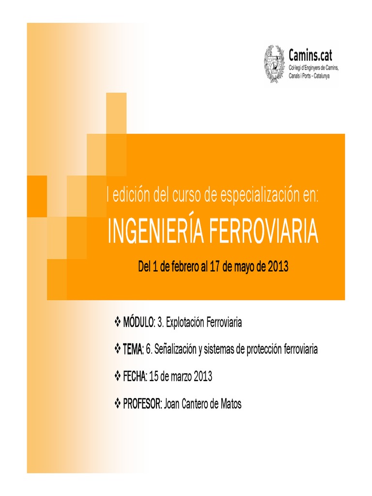 MDULO: 3. Explotacin Ferroviaria TEMA: 6. Sealizacin y sistemas de proteccin ferroviaria FECHA: 15 de marzo 2013 PROFESOR: Joan Cantero de Matos