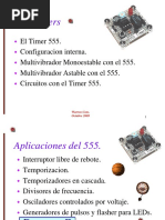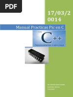 EJERCICIOS PROPUESTOS 1. Utilizando un PIC16F84, realice un contador binario de 5 a 55 por medio de leds, en bucle infinito. 2. Utilizando un PIC16F84 realice un secuenciador de 8 leds de izquierda a derecha y de derecha a izquierda por el Puerto B. Se deben ir encendiendo los leds de 3 en 3 en forma secuencial. (Mientras tres leds estn encendidos todos los dems estn apagados). El secuenciador a la izquierda se realiza por medio de la activacin de un suiche colocado en RA0 en activo bajo. El secuenciador a apagado 3. Se tienen 2 suiches que de acuerdo a las combinaciones de estos se realizaran uno de los siguientes procesos: Si el SW1 = 1 y SW2 =0 se realiza la intermitencia de 8 leds 10 veces. Si el SW1=0 y el SW2=1 encender 8 leds de 2 en 2 de adentro hacia fuera y de afuera hacia adentro. Este proceso se debe ejecutar 5 veces. Si el SW1=0 y el SW2=0 el valor actual del puerto debe mantenerse. Si el SW1=1 y el SW2=1 se realizara un contador de 6 en 6 hasta 36 4. Se desea tomar un numero introducido por el Puerto B y uno Introducido por el Puerto C para realizar lo siguiente: Realizar una operacin suma con ambos registros para luego realizar el siguiente: Si el resultado es menor de 50, se debe realizar un contador ascendentedescendente de 0 a 128 que realizara su funcin cada vez que se presione un pulsador colocado en RE0 para hacer un incremento o un pulsador colocado en RE1 para hacer un decremento. Cada vez que se presione el pulsador correspondiente se incrementara o excrementar solo un valor segn sea el caso. Muestreos por el Puerto D. Si resultado es mayor o igual de 50 se realizara la multiplicacin de este resultado por 4. Muestreos por el Puerto D. Si el resultado es mayor o igual de 100 se realizara 8 secuencias de luces diferentes por el puerto D Si el resultado es mayor o igual de 180 la puerto D permanecer apagado BIBLIOGRAFIA Eduardo Garca Breijo ---- Compilador C CCS la derecha se realiza por la activacin de un suiche colocado en RA1 en activo bajo. En otros estados de la entrada la salida cera