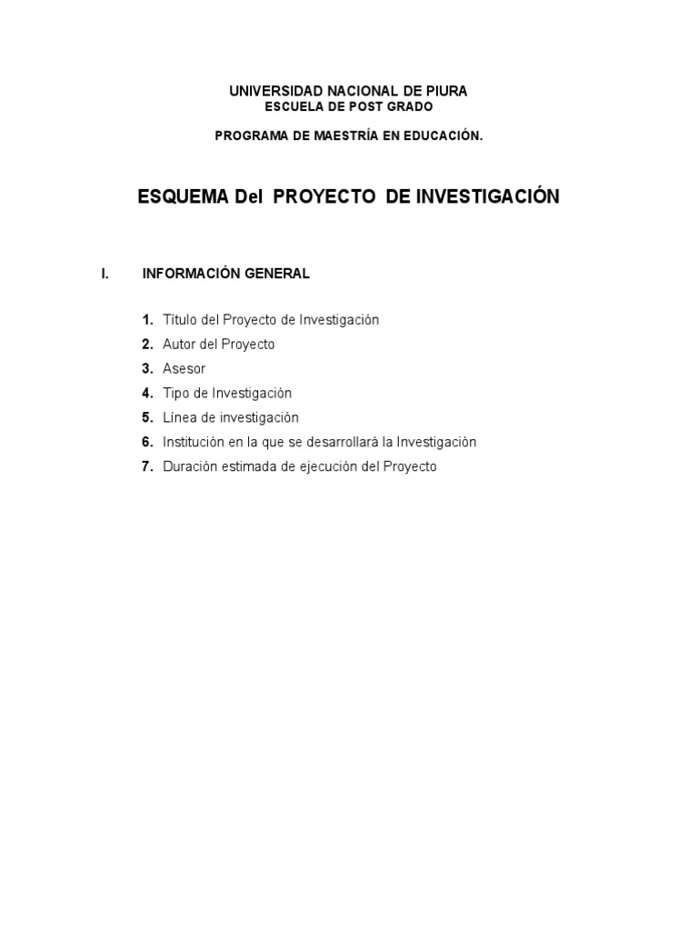 ESQUEMA Del PROYECTO DE INVESTIGACIN