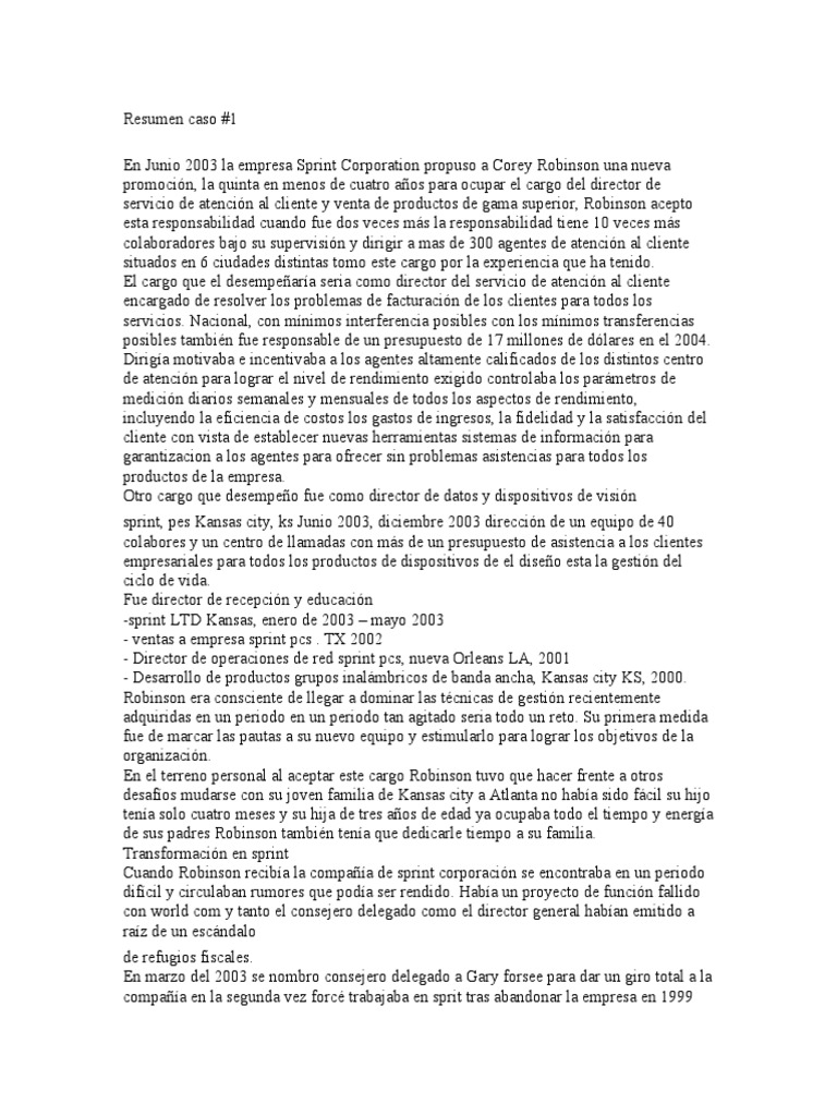 Resumen caso #1 En Junio 2003 la empresa Sprint Corporation propuso a Corey Robinson una nueva promocin, la quinta en menos
