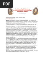 Laboratorio de Antropologa. Instituto Anatmico Forense. Ciudad Universitaria. Madrid mcnm136@mncn.csic.es Resumen: Se presenta una introduccin a la entomologa forense y a sus aplicaciones a la medicina legal. La fauna cadavrica, incluyendo a los artrpodos, constituyen una valiosa ayuda para fijar la fecha o data de la muerte en ciertos casos, as como otros aspectos relacionados con las circunstancias de la muerte y lugar de los hechos. Palabras clave: Entomologa Forense, Data de la muerte. * Conferencia presentada en IX Congreso Ibrico de Entomologa, Zaragoza, 4-8 julio, 2000. La civilizacin de las moscas se ha visto incrementada recientemente por la proliferacin de restos de materia orgnica y basura as como por la domesticacin de animales salvajes y la creacin de pueblos y ciudades. No obstante, su estudio viene de muy antiguo. La 14 lpida de la serie de HurraHubulla es una lista sistemtica de animales salvajes terrestres del tiempo de Hammurabi, de hace 3.600 aos, basada a su vez en una lista sumeria aun ms antigua. Se encuentra escrita en cuneiforme y es el primer libro de zoologa que se conoce. Entre los 396 animales citados, 111 son insectos y 10 son moscas. La "mosca verde" (Phaenicia) y la "mosca azul" (Calliphora), muy comunes hoy en casos forenses, son mencionadas aqu por primera vez. En civilizaciones antiguas, las moscas aparecen como amuletos (Babilonia, Egipto), como dioses (Baalzebub, El Seor de las Moscas), y es una de las plagas en la historia bblica del xodo. La metamorfosis de las moscas ya era conocida en el antiguo Egipto, pues un papel encontrado en el interior de la boca de una momia contiene la siguiente inscripcin: "Los gusanos no se volvern moscas dentro de ti" (Papiro Gized n 18026: 4: 14). La mayora de los insectos evitados 2