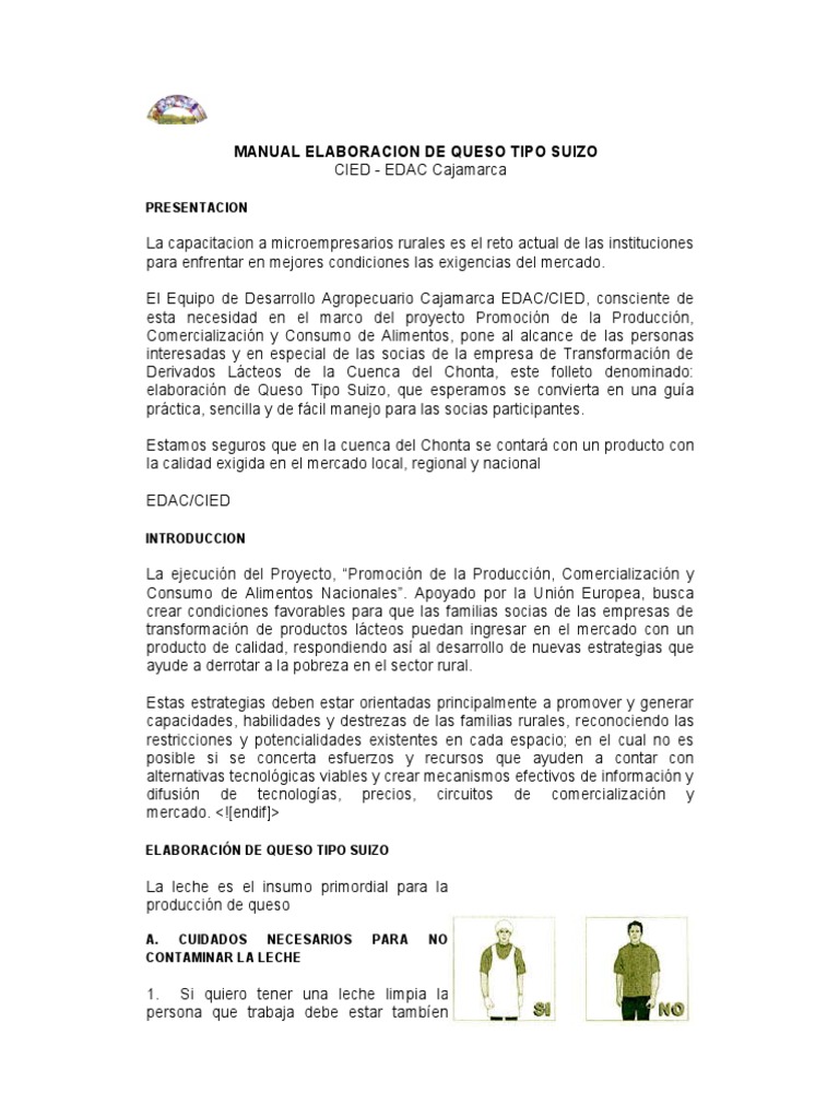 MANUAL ELABORACION DE QUESO TIPO SUIZO CIED - EDAC Cajamarca