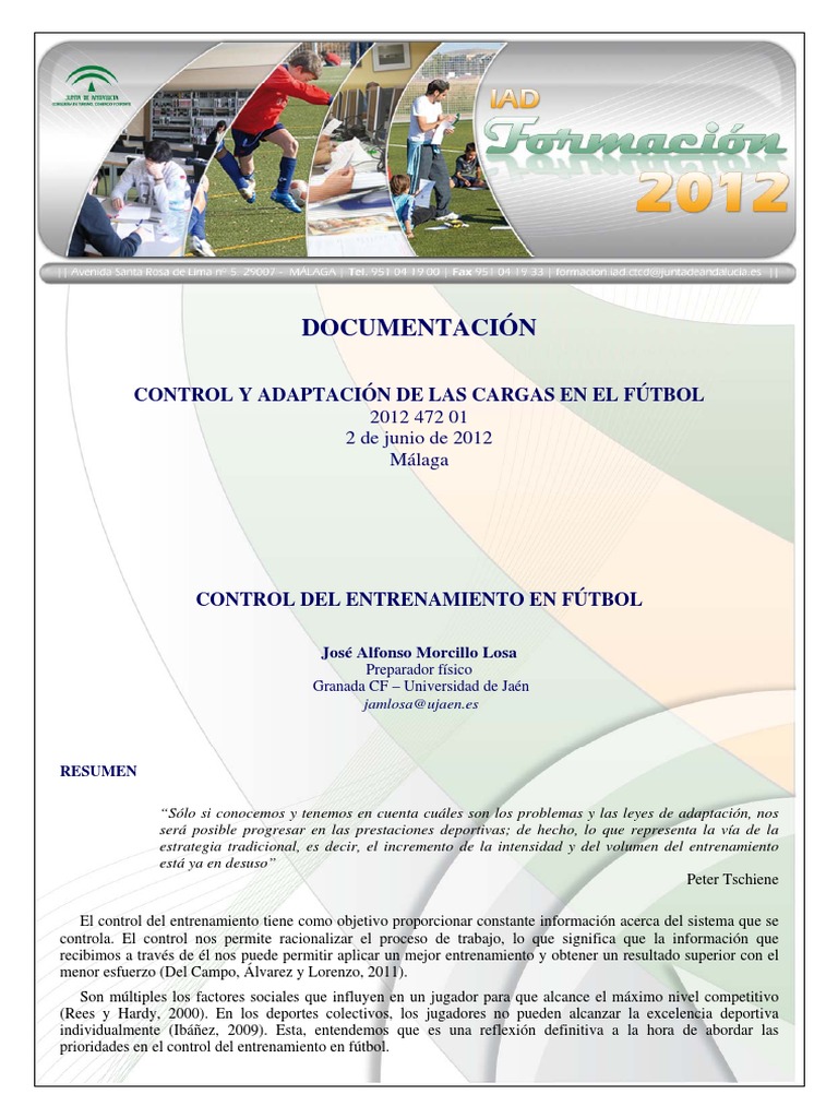 CONTROL Y ADAPTACIN DE LAS CARGAS EN EL FTBOL 2012 472 01 2 de junio de 2012 Mlaga