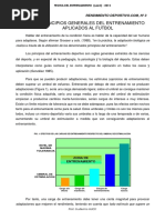 Queda pues clara la importancia del control del entrenamiento para una correcta individualizacin del mismo, as como para el desarrollo de una planificacin y periodizacin basadas en la valoracin de las variables determinantes del rendimiento en los jugadores de ftbol. PALABRAS CLAVE: percepcin subjetiva de esfuerzo (RPE), TRIMP, GPS, ftbol. GUIN DE LA INTERVENCIN 1. Introduccin 1.1. Objetivos del control del entrenamiento 2. Mtodos basados en la percepcin subjetiva del esfuerzo. 2.1. Clculo de la carga interna de entrenamiento. 2.2. Uso de la RPE para controlar la intensidad de las tareas. 2.3. Relacin RPE-Lesiones. 3. Mtodos basados en la respuesta de la FC al ejercicio. 3.1. Antecedentes: TRIMP de Banister, Edwards, y Luca. 3.2. TRIMP modificados de Stagno para deportes colectivos. 3.3. Aplicacin con protocolos de medida intermitentes. 4. Tecnologa GPS. 4.1. Caractersticas de los dispositivos para los deportes intermitentes. 4.2. Anlisis de la competicin. Ejemplos. 4.3. Anlisis del entrenamiento. Ejemplos. 5. Control de la carga en el entrenamiento de fuerza. 5.1 Control de la velocidad de ejecucin. 5.2. Carcter del esfuerzo. BIBLIOGRAFA RECOMENDADA AKUBAT, I., y ABT, G. Intermittent exercise alters the heart rate-blood lactate relationship used for calculating the training impulse (TRIMP) in team sport players. J Sci Med Sport, 2011, 14(3), 249-253. ALEXIOU, H., y COUTTS, A. J. A comparison of methods used for quantifying internal training load in women soccer players. Int J Sports Physiol Perform, 2008, 3(3), 320-330. AUBERT, A. E.; SEPS, B., y BECKERS, F. Heart rate variability in athletes. Sports Med, 2003, 33(12), 889-919. AUGHEY, R.J. Applications of GPS technologies to field sports. Int J Sports Physiol Perform, 2011, 6(3), 295-310. BORRESEN, J., y LAMBERT, M.I. Quantifying training load: a comparison of subjective and objective methods. Int J Sports Physiol Perform, 2008, 3(1), 16-30. COUTTS, A.J., y DUFFIELD, R. Validity and reliability of GPS devices for measuring movement demands of team sports. J Sci Med Sport, 2010, 13(1), 133-135. DELLAL, A.; DA SILVA, C.D.; HILL-HASS, S.; WONG, D.P.; NATALI, A.J.; DE LIMA y cols. Heart-rate monitoring in soccer: interest and limits during competitive match play and training. Practical application. Journal of Strength and Conditioning Research, 2012, Publish ahead of print. DESGORCES, F.D.; SENEGAS, X.; GARCIA, J.; DECKER, L. y NOIREZ, P. Methods to quantify intermittent exercises. Appl Physiol Nutr Metab, 2007, 32(4), 762-769. DI SALVO, V.; BARON, R.; TSCHAN, H.; CALDERON MONTERO, F.J.; BACHL, N. y PIGOZZI, F. Performance characteristics according to playing position in elite soccer. Int J Sports Med, 2007, 28(3), 222-227. ESPOSITO, F.; IMPELLIZZERI, M.; MARGONATO, V.; VANI, R.; PIZZINI, G. y VEICSTEINAS, A. Validity of heart rate as an indicator of aerobic demand during soccer activities in amateur soccer players. Eur J Appl Physiol, 2004, 93: 167172 GABBETT, T.J., y JENKINS, D.G. Relationship between training load and injury in professional rugby league players. J Sci Med Sport, 2011, 14(3), 204-209. GONZLEZ BADILLO, J.J., y RIBAS SERNA, J. Bases de la programacin del entrenamiento de fuerza. Barcelona: Inde, 2002.
