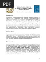 -(&%$.e&t$ci)&+ El estu!io !e to!a literatura implica recorrer !e una manera intuiti"a el alma y el esp#ritu !e la humani!a!. La literatura espaola !a muestras aca$a!as !el tra$a%o !el escritor como art# ice re ina!o !e las m&s "aria!as situaciones' !es!e la honra ultra%a!a hasta la cr#tica !e las m&s insosteni$le !e las $urocracias. (us te)tos han !a!o a *m+rica re erentes para su propia inspiracin' en !ichas p&ginas se encuentran ormas' temas y moti"os ,ue los escritores americanos han toma!o' muchas "eces' para reescri$irlos. *$or!ar la lectura !e los te)tos espaoles implica' por un la!o' compren!er' en parte' las e)periencias literarias !e *m+rica Latina' no !es!e un punto !e "ista glo$al' sino como pro un!o eco !e los or#genes europeos- y por otro' apreciar una literatura ,ue ha lle"a!o a nuestro i!ioma a momentos !e gloria. Conocer la literatura espaola' aun,ue sea en orma tan $re"e' es a"[Link] un poco m&s en el conocimiento !el !esarrollo po+tico !el castellano. To!o !ocente ,ue logre este cometi!o po!r& ser porta"o. !e este uni"erso literario' ya ,ue to!o te)to literario /"i"e0 en cuanto hay otro ,ue lo saca !e su oscuri!a!.