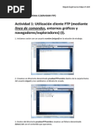 Con$igura'i*n del servidor #-S 'omo primario (Aaestro) para una 5ona de resolu'i*n inversa! P1R -ueva 5ona de /Bsqueda inversa Ini'io 4 "erramientas administrativas 4 #-S ! es'o2o 8Donas de /Bsqueda inversa:! 8Dona nueva: , es'o2o 8Dona prin'ipal: ! Dona de /Bsqueda inversa para IPv4 , en GId. de Red G meto la IP de la red 1'2(1%8(& veo el nom/re que da a la 5ona , el resto por de$e'to. Crear los registros de resolu'i*n inversa me posi'iono en la nueva 5ona que 0e 'reado G&(1%8(1'2(in1addr(ar)a(dnsG , 'li'% en /ot*n dere'0o del rat*n! eli2o nuevo puntero P1R! le do, a examinar! /us'o el equipo que vo, a in'luir , me pone todos los datos! reali5o la misma opera'i*n 'on todos los equipos .-ota 'uando se sele''iona un equipo en la dire''i*n IP del 0ost pone la Ip 'ompleta , 0a, que /orrar toda la IP de2ando solo la parte $inal (54! 5F! 52). Comando nsloo.u) <=2.<)8.>.5F Se 'omprue/a que resuelve poniendo IP de 'ada equipo. Instala'i*n Servidor &e/ 6pa'0e Instala'i*n del Servidor 6pa'0e! versi*n WinF2 /inari in'luding openssl versi*n 2.2.22 de la &e/ 2tt)3++a)ac2e(rediris(es++2tt)d+4inaries+5in#2+ , es'o2o la versi*n 2tt)d12(2(2215in#21x8%1o)enssl10('(8t(msi Reali5o la instala'i*n (todo por de$e'to , instala'i*n Gmodo 'ustomG , todo por de$e'to). Compro/ar en el i'ono del GAonitor de 6pa'0eG en la /arra de tareas! que se esta e2e'utando. Comprue/o que el servidor esta es'u'0ando en el puerto 80 1CP 'on un terminal , el 'omando netstat 7a 7p t'p 7n Se instala un editor de texto plano 'omo -ote)ad66 , el explorador &e/ $ire$ox. Se edita el ar'0ivo index.0tml que sirve el servidor apa'0e 'on -otepadHH! situado en C I6r'0ivos de programaI6pa'0e so$t&are 9oundationIapa'0e2.2I0tdo'sIindex.0tml le 'am/io el 'ontenido para identi$i'ar que es la del servidor de &indo&s. pongo por e2emplo GContenido &e/ del servidor apa'0e en &indo&s 2008G 1engo que in'luir el programa apa'0e en el $ire&all de &indo&s para que no lo /loquee. Ini'io 4 Panel de 'ontrol 4 9ire&all de &indo&s! sele''iono GPermitir un programa a trav;s del 9ire&all de Windo&sG! en G3x'ep'ionesG sele''iono G6gregar programaG! , a(ado 2tt)d(exe que esta en C I6r'0ivos de programaI6pa'0e so$t&are 9oundationIapa'0e2.2I/[Link] . Comprue/o 'on el -avegador &e/ de la maquina #esarrolloW>52 (Windo&s > 'liente) que puedo a''eder a la pagina &e/ que sirve el Servidor apa'0e. Con$igura'i*n /Jsi'a de 6pa'0e en &indo&s Crea'i*n de $i'0eros , dire'torios de prue/a en la siguiente ruta C I6r'0ivos de programaI6pa'0e so$t&are 9oundationIapa'0e2.2I0tdo's dentro de 0tdo's 'reamos despliegue.0tml! $p.0tml! 'arpeta 'i'los , dentro lista.0tml! asir.0tml! da&.0tml! dam.0tml (Se es'ri/e un texto que identi$ique 'ada pagina 'omo por e2emplo) 'omprue/o 'on un navegador en &indo&s > que a''edo a las di$erentes paginas de prue/a que 0e 'reado , por de$e'to 'arga la de index.0tml (si pongo 'i'los lista el 'ontenido). 3dito el $i'0ero C I6r'0ivos de programaI6pa'0e so$t&are 9oundationIapa'0e2.2I'on$I0ttpd.'on$ 'on notepadHH , a(ado lo siguiente! asK la )agina de inicio es despliegue.0tml. L#ire'tor, MC NProgram 9ilesN6pa'0e So$t&are 9oundationN6pa'0e2.2N0tdo'sMO #ire'tor,Index despliegue.0tml LN#ire'tor,O 6(ado a 'ontinua'i*n del 'am/io anterior! otro 'am/io para que no liste el contenido de la car)eta 'i'los.