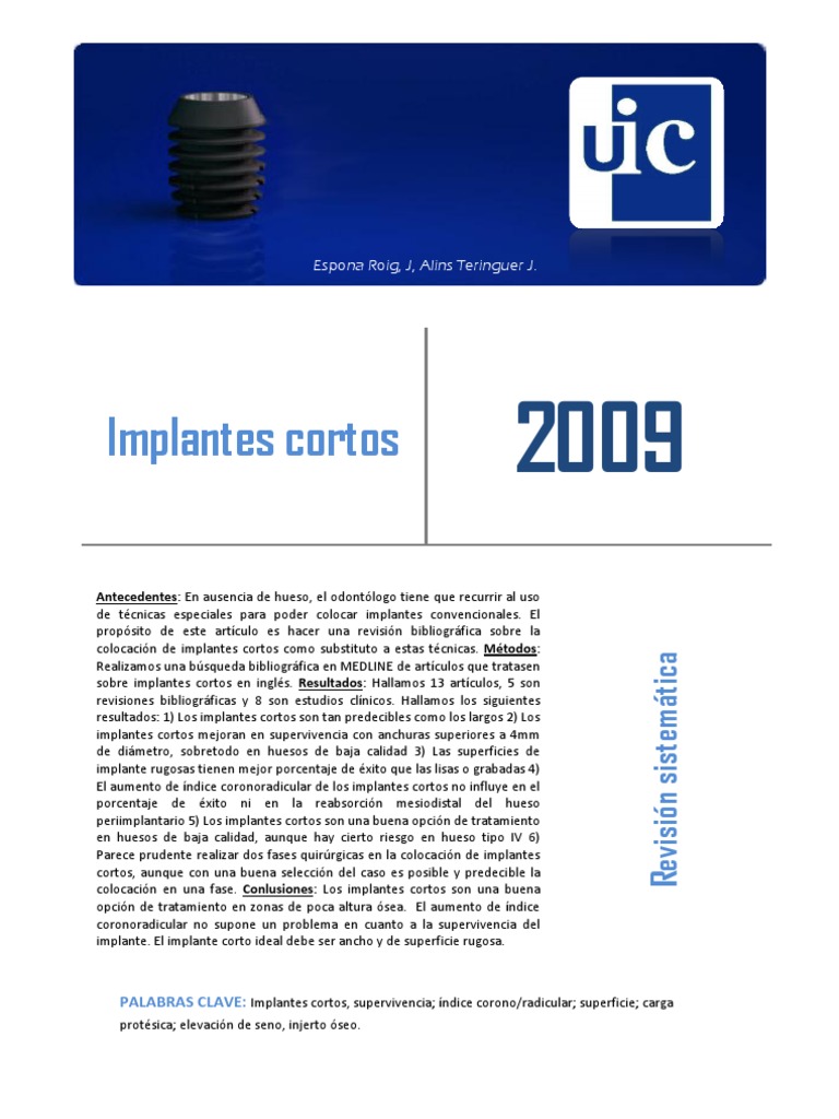 sobre implantes cortos en inglés. Resultados: Hallamos 13 artículos, 5 son