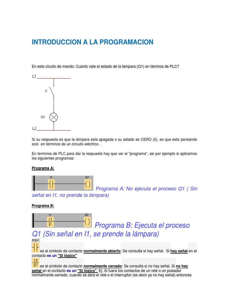 Si su respuesta es que la lmpara esta apagada o su estado es CERO (0), es que esta pensando solo en trminos de un circuito elctrico. . En terminos de PLC para dar la respuesta hay que ver el "programa", asi por ejemplo si aplicamos los siguientes programas: Programa A: