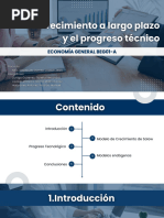 LA REGLA DE ORO CON CRECIMIENTO DE POBLACION Y PROGRESO TECNOLOGICO Ahora vamos a modificar el modelo de Solow para incluir el progreso tecnolgico exgeno, que aumenta con el tiempo la capacidad de produccin de la sociedad. Hasta ahora la funcin de produccin era Y = F ( K, L ), ahora la expresamos como: Y = F ( K, L x E ) Donde E es la variable eficiencia del trabajo (reflejo del conocimiento de la poblacin sobre los mtodos de produccin, a mayor E, mayor produccin). El termino L x E mide el numero de trabajadores efectivos, por lo que la produccin depende del capital y el numero de trabajadores efectivos. La eficiencia del trabajo, E, crece a una tasa constante de g (p.e, si g=0,02, cada unidad de trabajo se vuelve un 2% mas eficiente cada ao). Este progreso tecnolgico aumenta la eficiencia del trabajador y g es la tasa de progreso tecnolgico que aumenta la eficiencia del trabajo. Como L crece a una tasa de n, y E a una tasa de g, el numero de trabajadores efectivos L x E, esta creciendo a n + g. Partiendo de que k = K/(L x E) representa el capital por trabajador efectivo e y = Y/(L x E) representa la produccin por trabajador efectivo. Podemos determinar que la ecuacin de representa la evolucin de k con el paso del tiempo es: k = sf(k) ( + n+ g) k = 0