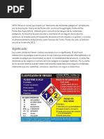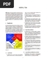 La norma NFPA 704 es el cdigo que explica el "diamante de fuego" establecido por la Asociacin Nacional de Proteccin contra el Fuego (ingls: National Fire Protection Association), utilizado para comunicar los riesgos de los materiales peligrosos. Es importante para ayudar mantener el uso seguro de productos qumicos. Contenido 1 Significado o 1.1 Azul/Salud o 1.2 Rojo/Inflamabilidad o 1.3 Amarillo/Inestabilidad/reactividad o 1.4 Blanco/Especial 2 Enlaces externos