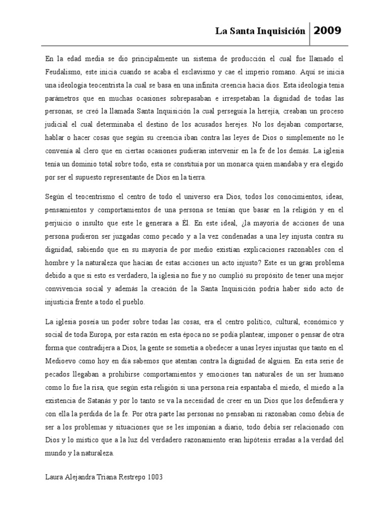 convivencia social y además la creación de la Santa Inquisición podría haber sido acto de
