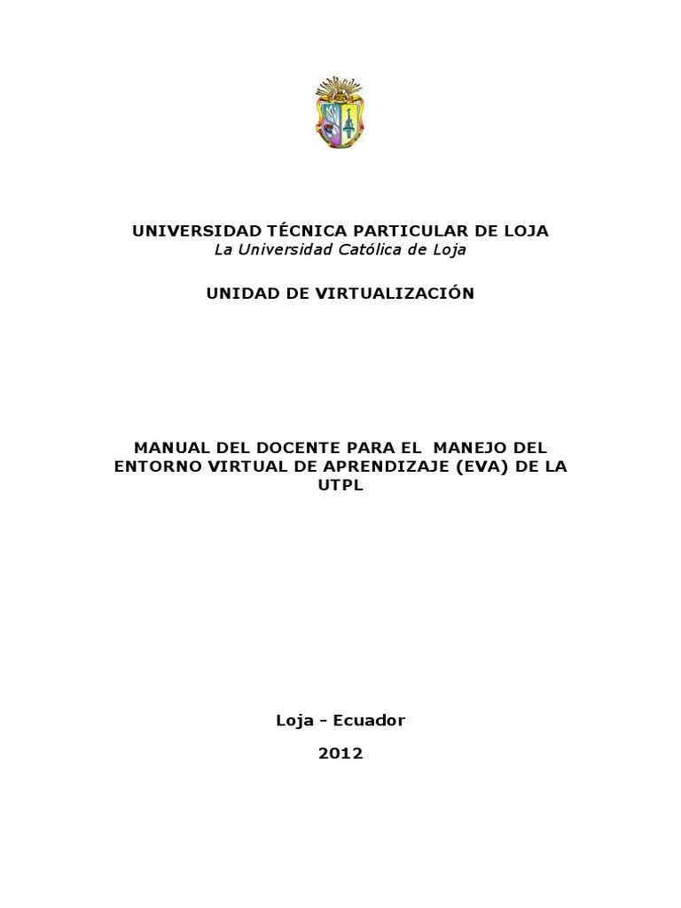 MANUAL DEL DOCENTE PARA EL MANEJO DEL ENTORNO VIRTUAL DE APRENDIZAJE (EVA) DE LA UTPL