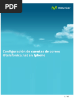 Puede encontrar mayor informacin sobre como poder acceder a las opciones de configuracin de su equipo mvil en nuestro sitio web [Link] 1. Si esta es la primera cuenta de correo electrnico de su iPhone, pulse Mail. Si ya tiene alguna cuenta, pulse Ajustes > Correo, contactos, calen. > Aadir cuenta. 2. Puntee en Configuracin > Correo, contactos y calendarios > Agregar cuenta. 3. Puntee en Microsoft Exchange. 4. No es necesario que escriba nada en el cuadro Dominio. Especifique la informacin necesaria en los cuadros Correo, Usuario y Contrasea. En los cuadros Correo y Usuario, deber escribir la direccin de correo completa (por ejemplo, antonio@[Link]). 5. En la esquina superior derecha de la pantalla, pulse Siguiente. El programa de correo intentar encontrar los parmetros necesarios para configurar su cuenta. Si el programa de correo encuentra los parmetros, vaya al paso 8. 6. Si su iPhone no consigue encontrar los parmetros, tendr que buscar manualmente el nombre de su servidor de Exchange ActiveSync. Si va a conectarse a su correo de Outlook 365, utilice [Link] como nombre del servidor. 7. En el cuadro Servidor, especifique el nombre del servidor y despus puntee en Siguiente. 8. Elija el tipo de informacin que quiere sincronizar entre la cuenta y el dispositivo y, despus, pulse Guardar. De forma predeterminada, se sincroniza la informacin de correo, contactos y calendario. 9. Si se le pide que cree un cdigo de acceso, pulse Continuar y escriba un cdigo de acceso numrico. Si no configura ningn cdigo de acceso, no podr ver la cuenta de correo en su iPhone. Puede configurar un cdigo de acceso ms adelante en los ajustes del iPhone.