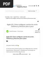 Puede configurar el acceso POP a la cuenta de correo electrnico en un Apple iPhone, iPad o iPod Touch. Puede encontrar mayor informacin sobre como poder acceder a las opciones de configuracin de su equipo mvil en nuestro sitio web [Link] Cmo se configura el correo electrnico POP en un terminal iPhone? 1. 2. 3. 4. Puntee en Configuracin > Correo, Contactos, Calendarios > Agregar cuenta. Puntee Otro. En el cuadro Nombre, escriba su nombre completo. En el cuadro Direccin escriba su direccin de correo electrnico completa (por ejemplo, tony@[Link]). 5. En el cuadro Contrasea, escriba la contrasea y, luego, puntee en Guardar. 6. Puntee POP. 7. En Servidor de correo entrante en el cuadro Nombre de host, escriba el nombre del servidor entrante. Para obtener informacin sobre cmo encontrar el nombre del servidor entrante (POP), consulte la seccin "Qu ms es preciso saber?", a continuacin. 8. En el cuadro Nombre de usuario, escriba su direccin de correo electrnico completa (por ejemplo, tony@[Link]). En el cuadro Contrasea, escriba la contrasea. 9. En Servidor de correo saliente, en el cuadro Nombre de host, escriba el nombre del servidor saliente. Para obtener informacin sobre cmo encontrar el nombre del servidor de salida (SMTP), vea "Qu ms es preciso saber?" ms abajo. 10. En el cuadro Nombre de usuario, escriba su direccin de correo electrnico completa (por ejemplo, tony@[Link]). En Contrasea, escriba la contrasea. 11. Haga click en Guardar. Qu ms es preciso saber?